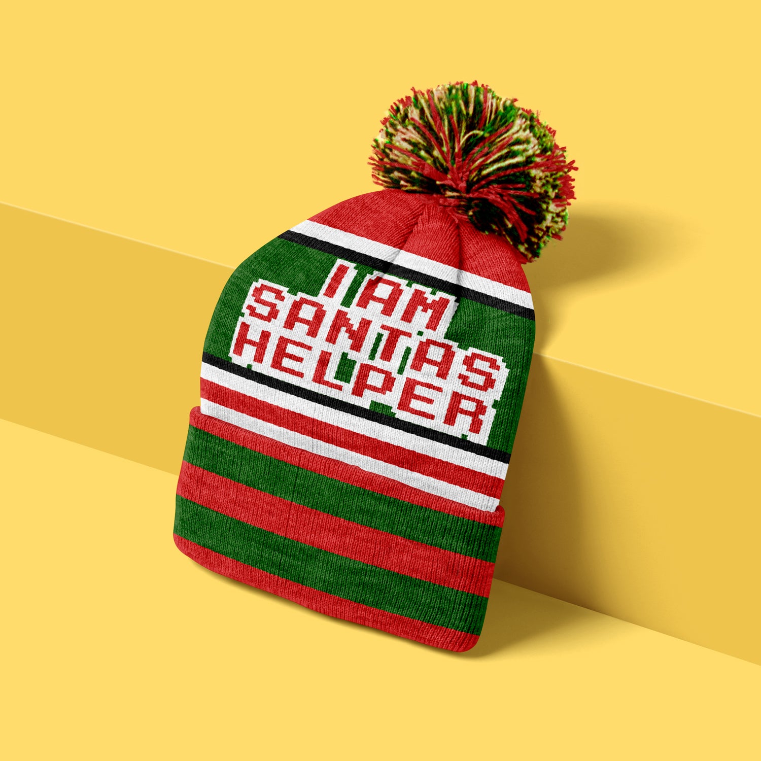 Everyone can be Santa's Helper now, with the aid of this cozy pom pom knit beanie!
